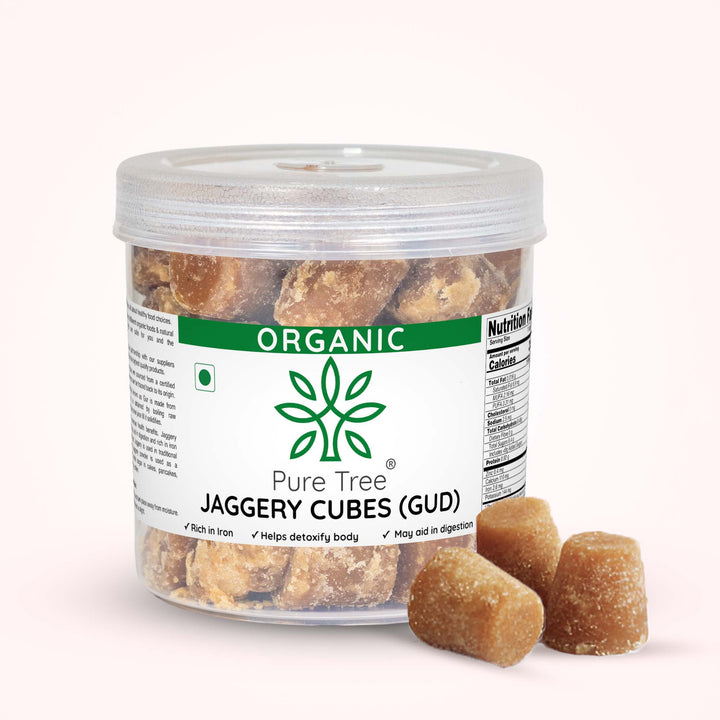 HEALTH BENEFITS- Pure Tree Organic Gur Jaggery Cubes naturally provides vitamins & minerals, serves as a quick energy source, reduces acidity & boosts digestive enzyme activity.