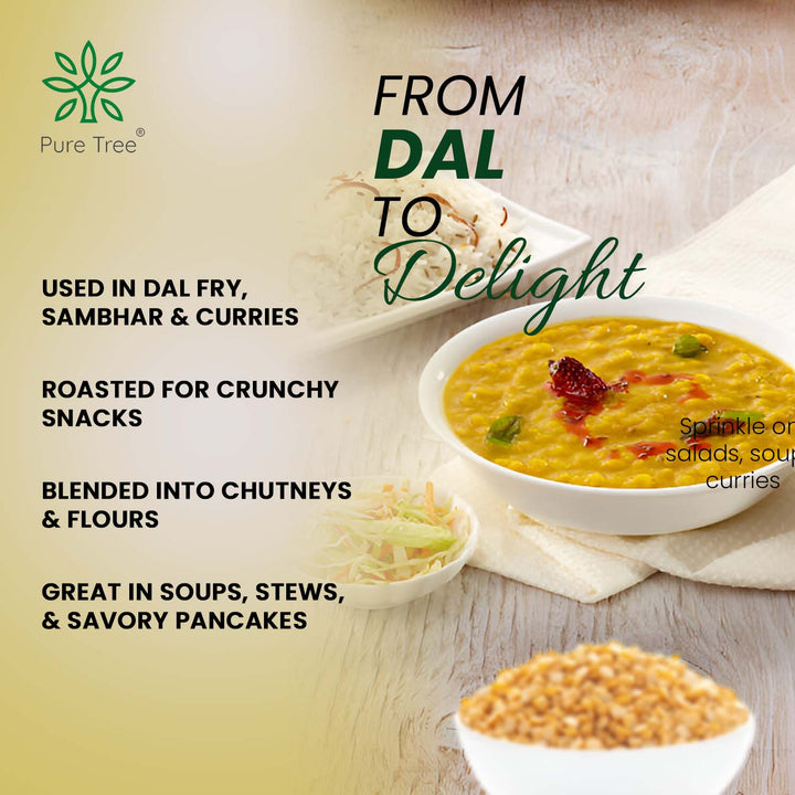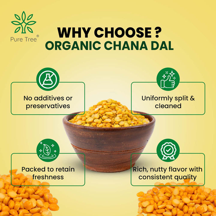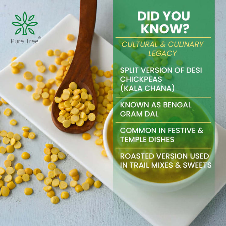 HEALTH BENEFITS- Chana dal is a nutrient-dense pulse, high in protein and fiber, supporting heart health, aiding digestion. Low glycemic index aids in weight management, provides essential nutrients for bones.
