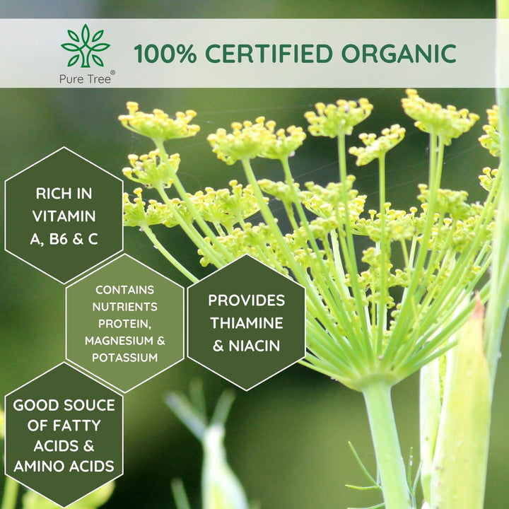 CERTIFIED ORGANIC FENNEL SEEDS - Foeniculum vulgare, commonly known as fennel, Aside from Culinary uses fennel seeds offer health benefits, may provide antioxidant, anti-inflammatory and antibacterial effects.